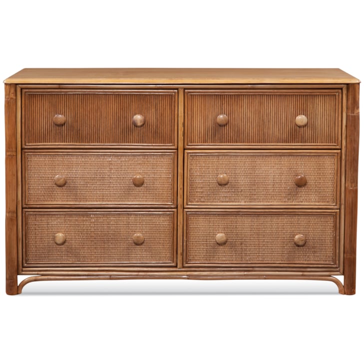 Naples Six Drawer Rattan Dresser